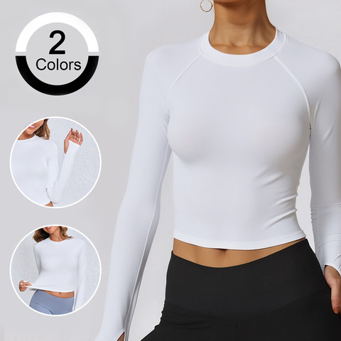 Nieuwe Zomer Dames Effen Kleur Ronde Hals Lange Mouw Nude Ultra Zachte Nylon Sport Fitness Pak Top
